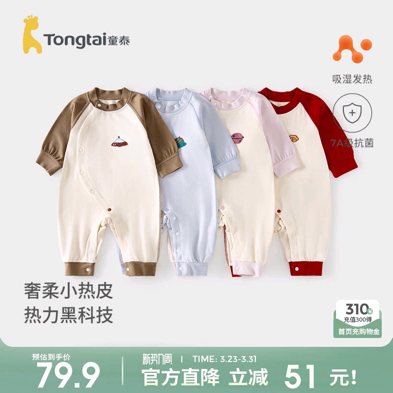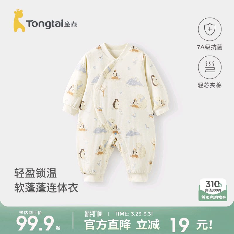 童泰婴儿连体衣秋冬季纯棉夹棉男女宝宝衣服新生儿棉哈衣爬服睡衣