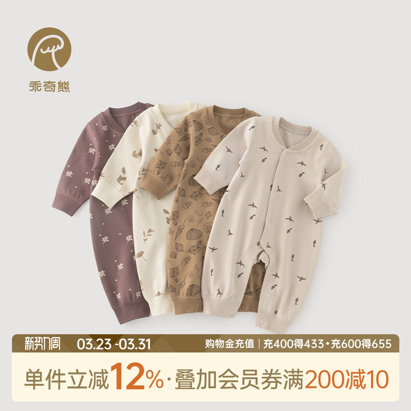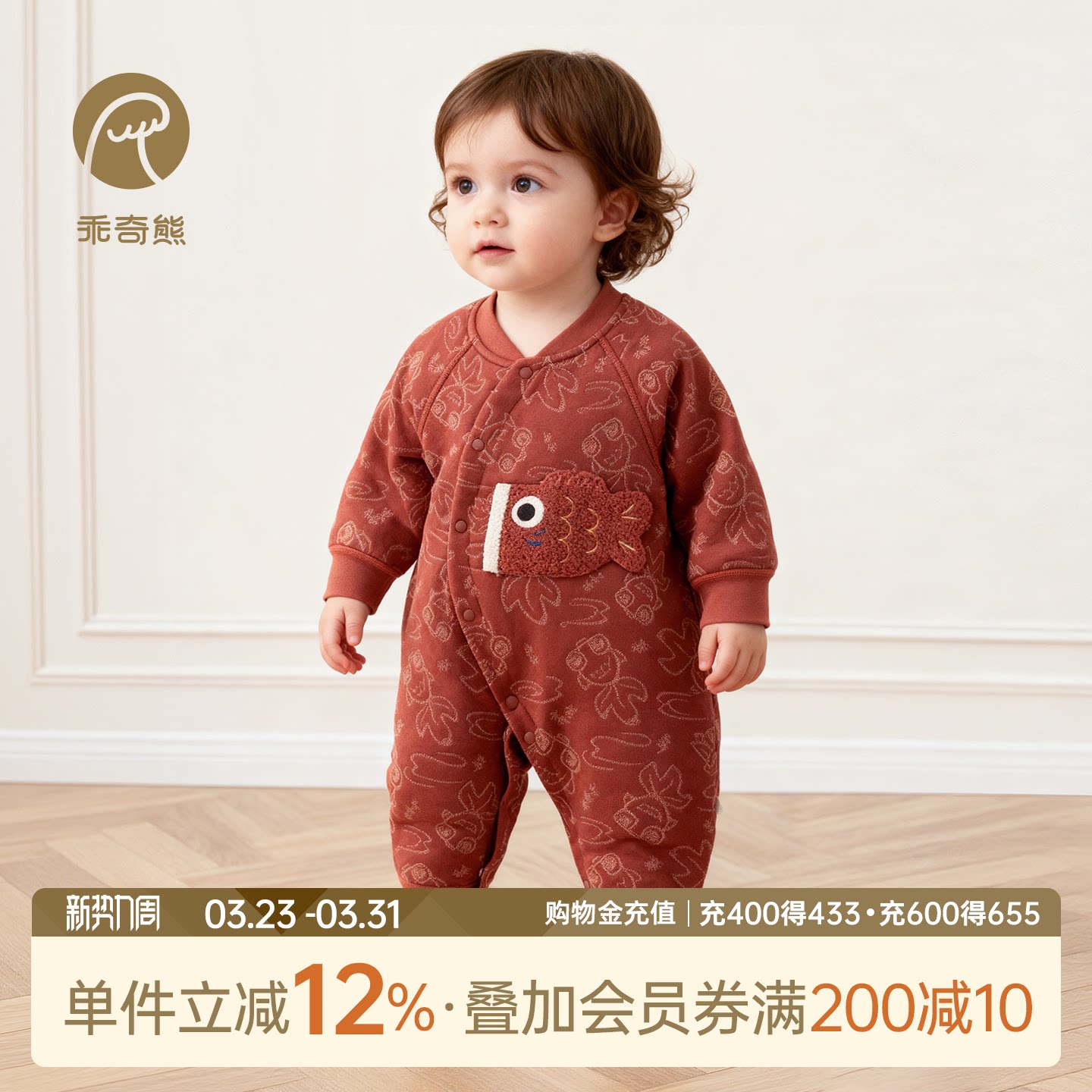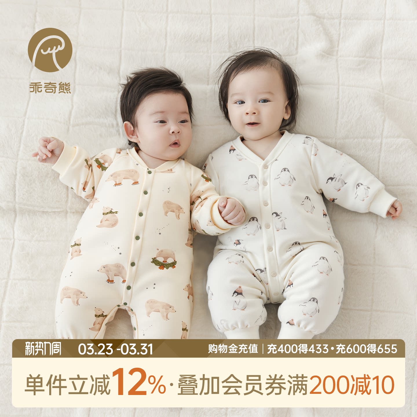乖奇熊秋冬季婴儿居家夹丝棉连体衣服男女宝宝可爱保暖哈衣爬爬服