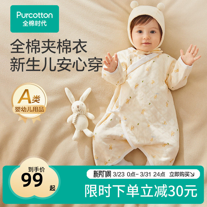 全棉时代婴儿夹棉连体衣秋冬季新生儿衣服男女宝宝纯棉睡衣蝴蝶衣
