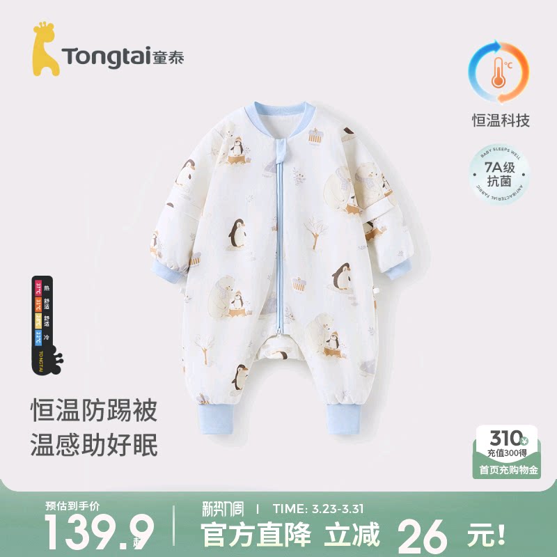 童泰婴儿睡袋秋冬季纯棉宝宝分腿连体睡衣男童女童防踢被四季通用