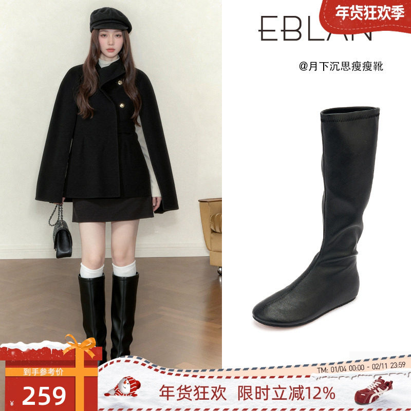 EBLAN/伊伴鸭嘴长筒靴女2025秋冬新款内增高弹力高筒忍者瘦瘦靴子