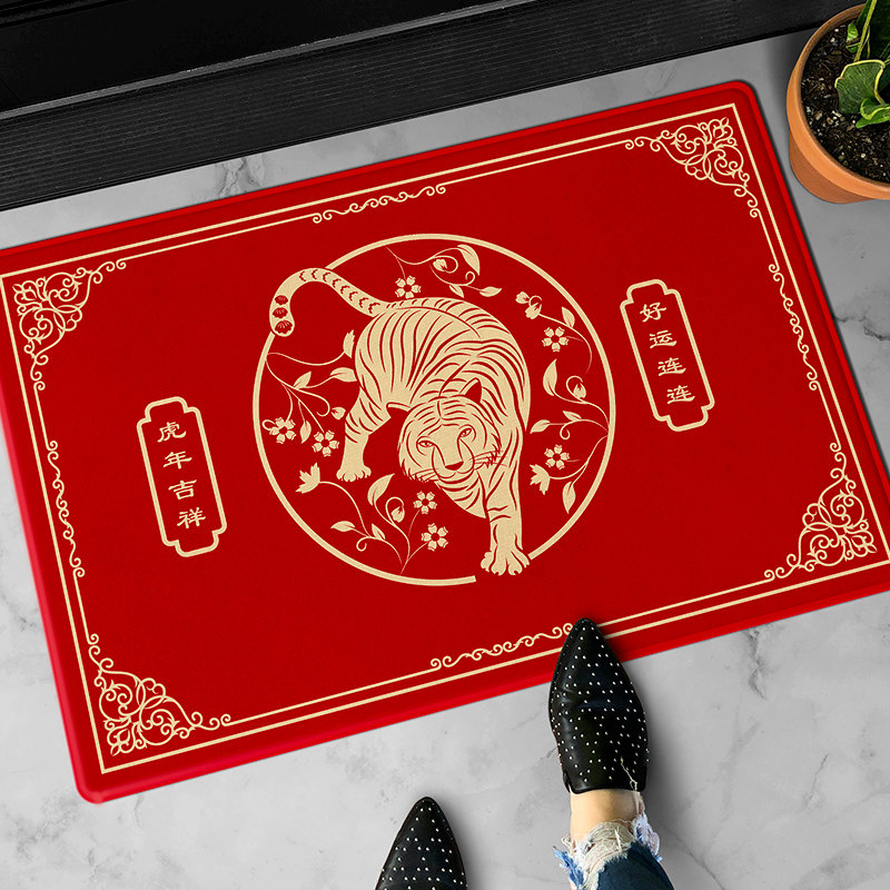 新中式入户门地垫进门门垫大门口玄关门外踩脚垫老虎图案地毯耐脏