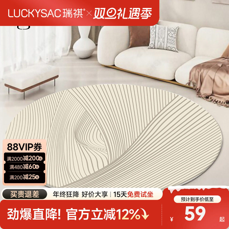 luckysac仿羊绒几何图案地毯简约圆形地毯卧室客厅床边茶几地垫