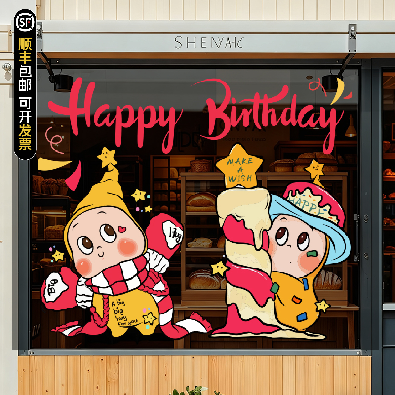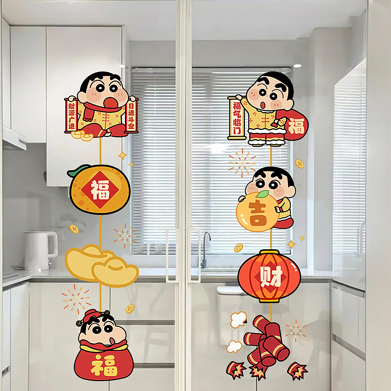 2025新年厨房客厅玻璃贴纸卡通春节过年窗户对联静电装饰贴画场景