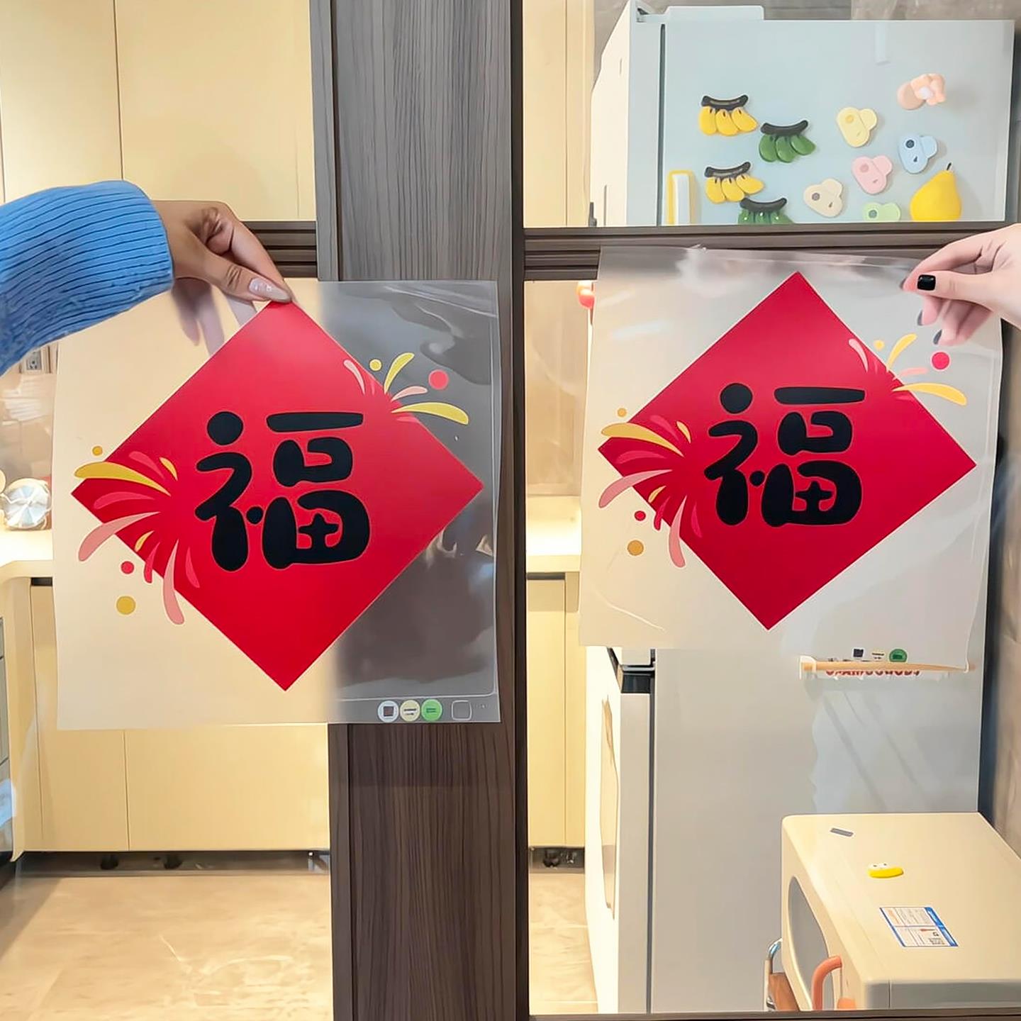 新年厨房装饰贴纸福字烟花静电贴2026马年春节元旦客厅玻璃贴画