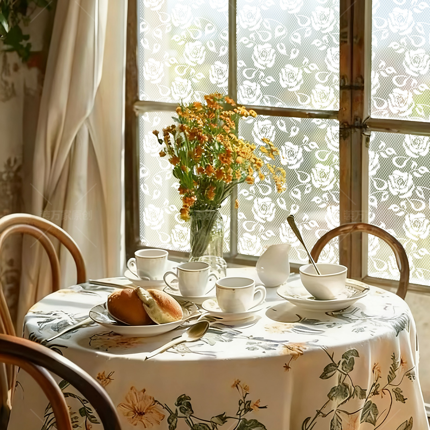 装万家法式蕾丝花韵玻璃防窥装饰复古透光不透人浴室客厅玻璃贴膜
