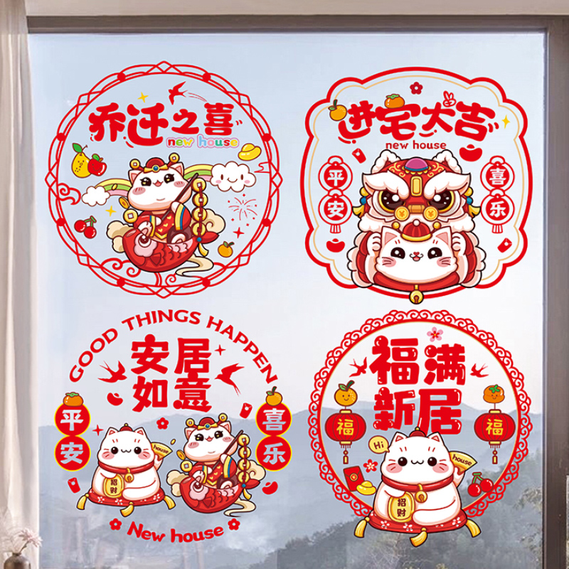 乔迁之喜新居布置装饰客厅玻璃贴窗花门贴静电贴搬家入宅仪式用品