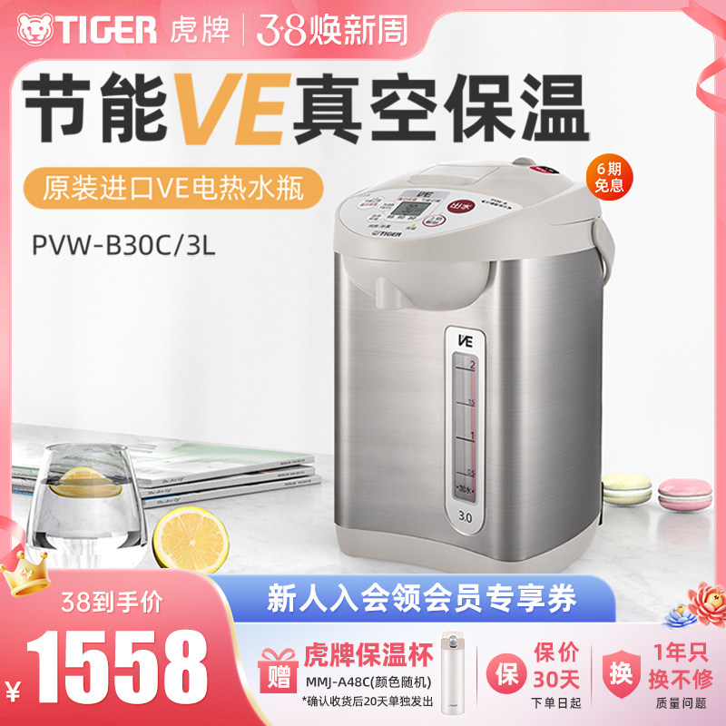 TIGER虎牌 PVW-B30C日本进口VE恒温电热水瓶家用保温一体电水壶3L