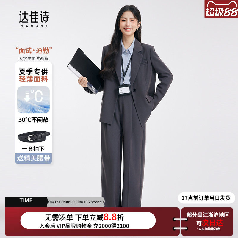 达佳诗灰色西装套装女夏薄款职业正装大学生面试女士高级西服外套