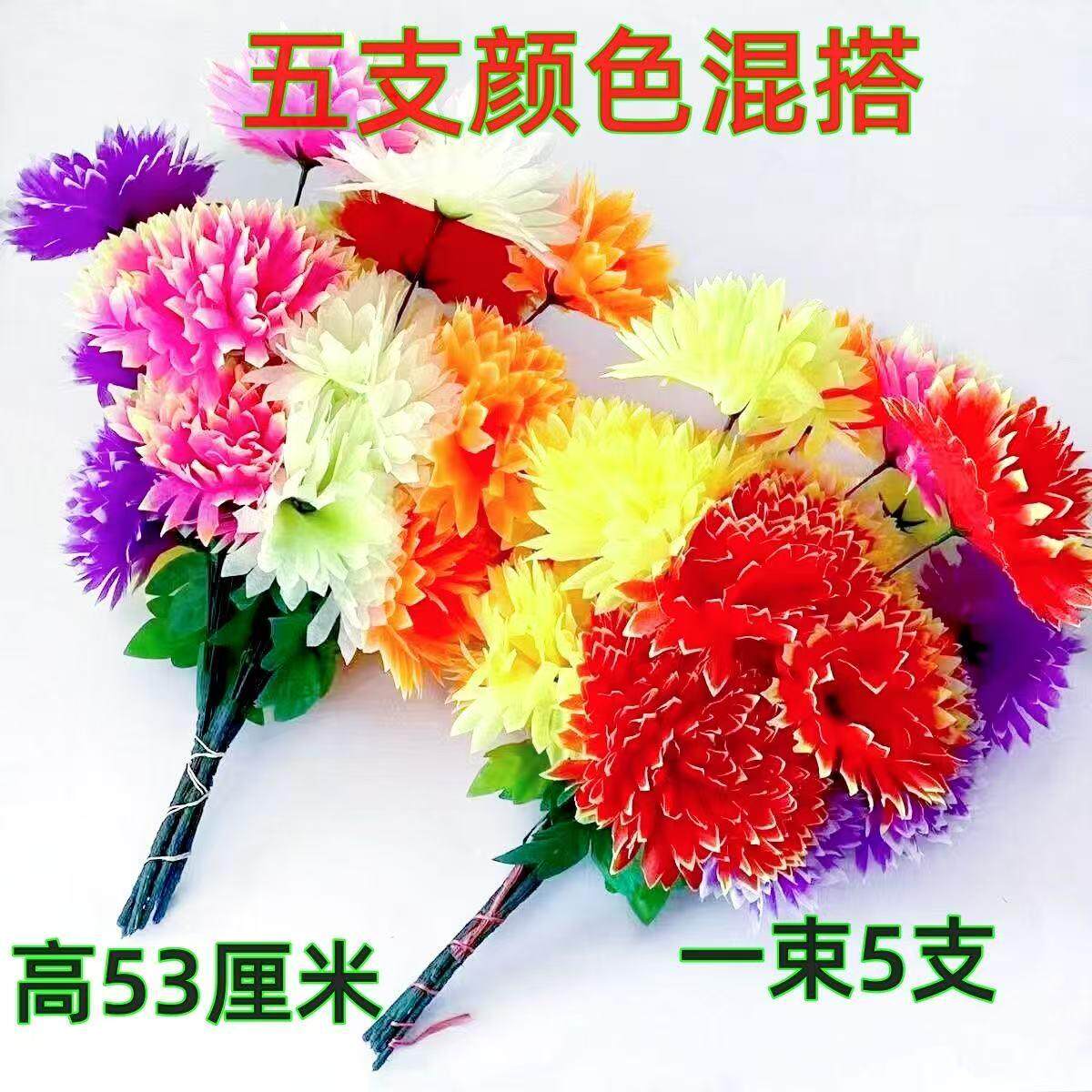 新款五支水晶菊花清明花束用品仿真绢花假花包邮厂家直销元宝折纸