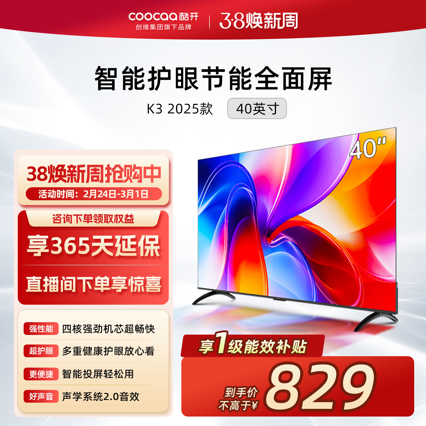 创维酷开K3 40英寸高清家用电视机液晶屏幕彩电官方旗舰店正品43