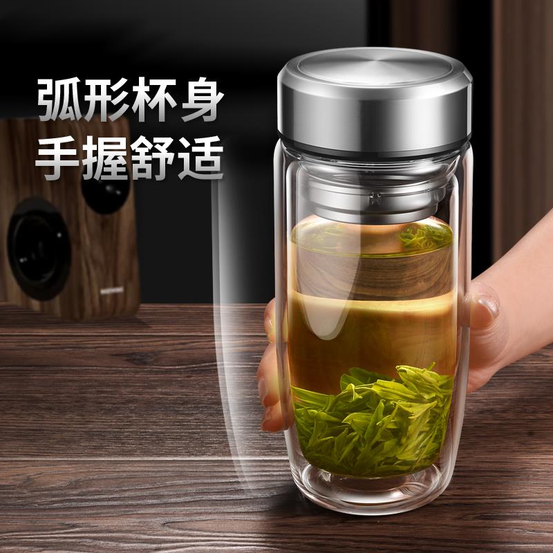 商务大容量双层玻璃杯茶水分离泡茶杯男女办公耐热高硼硅水杯车载