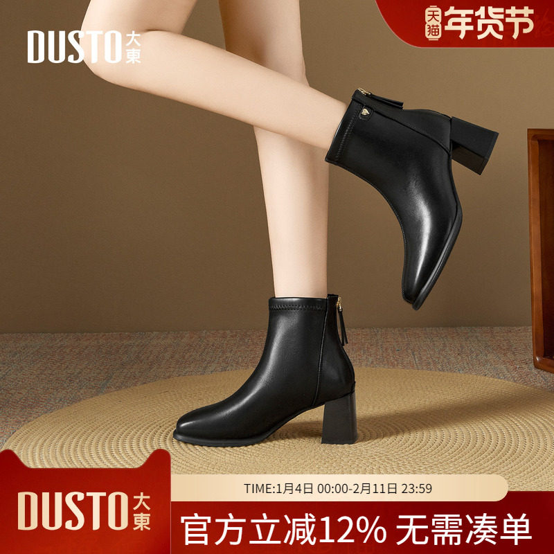 - 粗跟短靴圆头