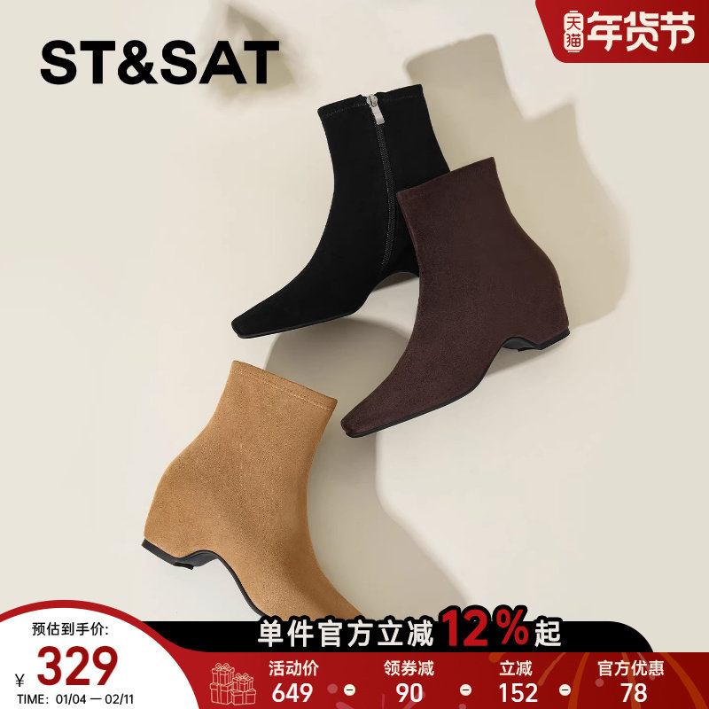 - 真皮厚底内增高短靴