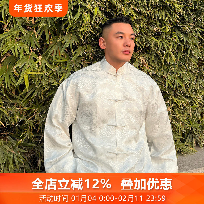 仙风道骨新中式国风男装斜襟衬衫提花中山唐装通勤汉服道家太极服