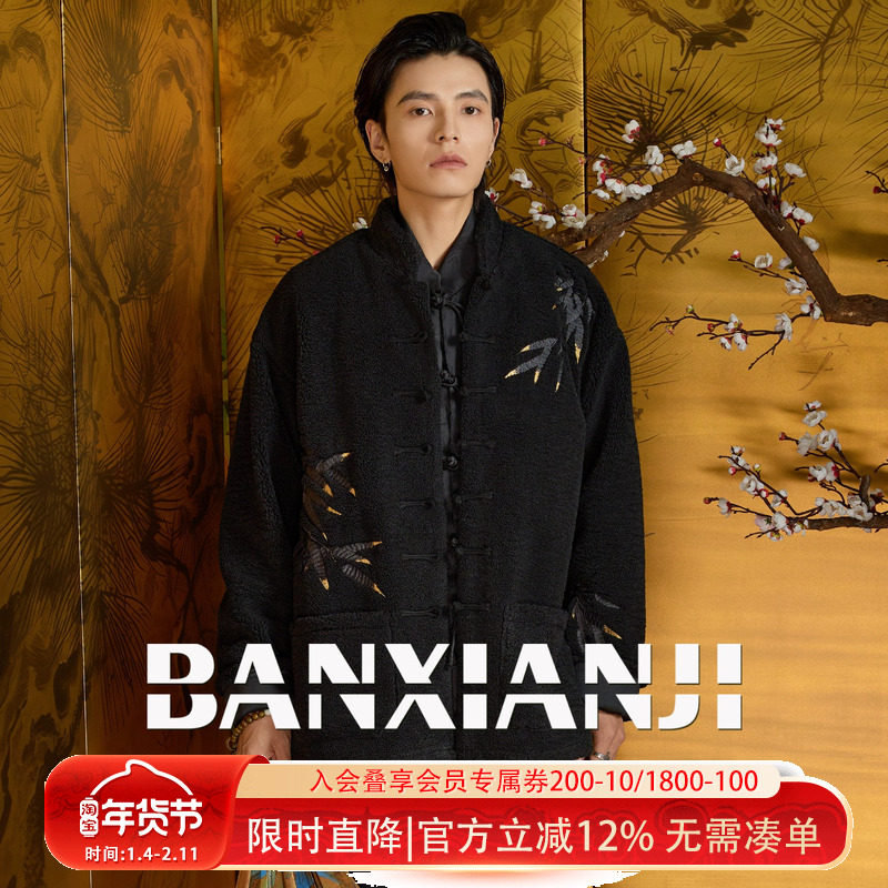 半闲集<幽篁>羊羔绒唐装竹刺绣夹克新中式国风男装冬季保暖外套