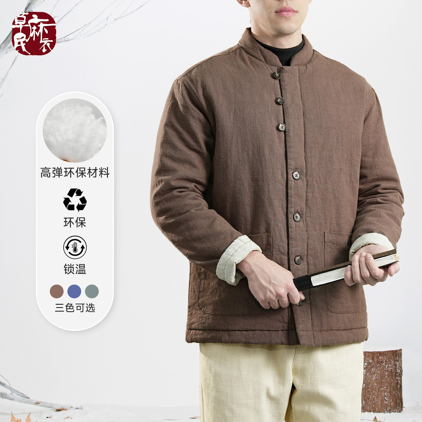 楠新中式唐装男款春秋苎麻外套国风男装上衣2026新款禅修服男霜华