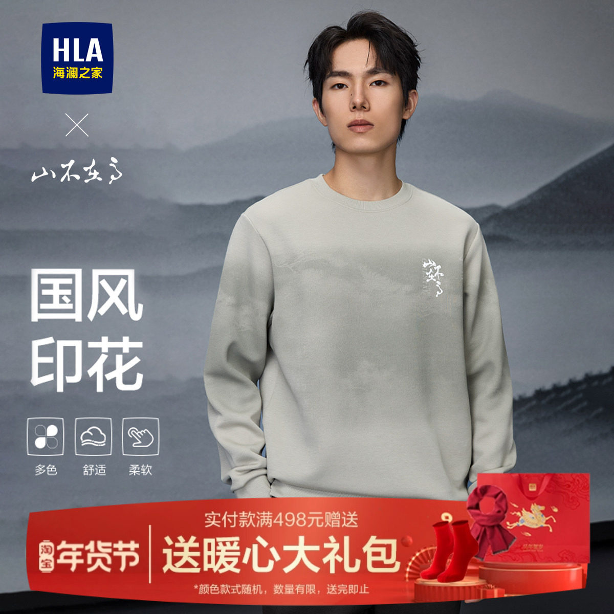 HLA/海澜之家圆领加绒卫衣男士25冬季新款国风男装长袖加厚上衣男