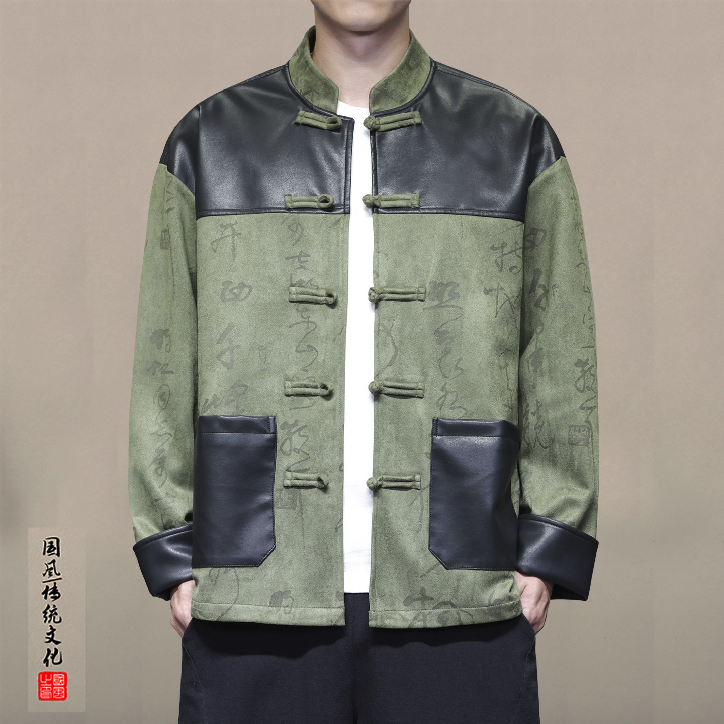 [轻奢]高品质新中式国风男装pu皮夹克唐装男款复古外套2025秋季