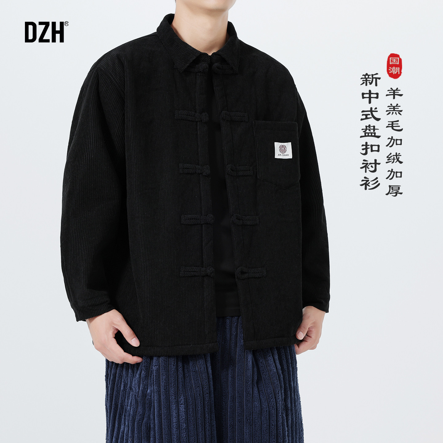 灯芯绒衬衫长袖男秋冬季新中式国风男装斜襟汉服道袍外套潮牌痞帅