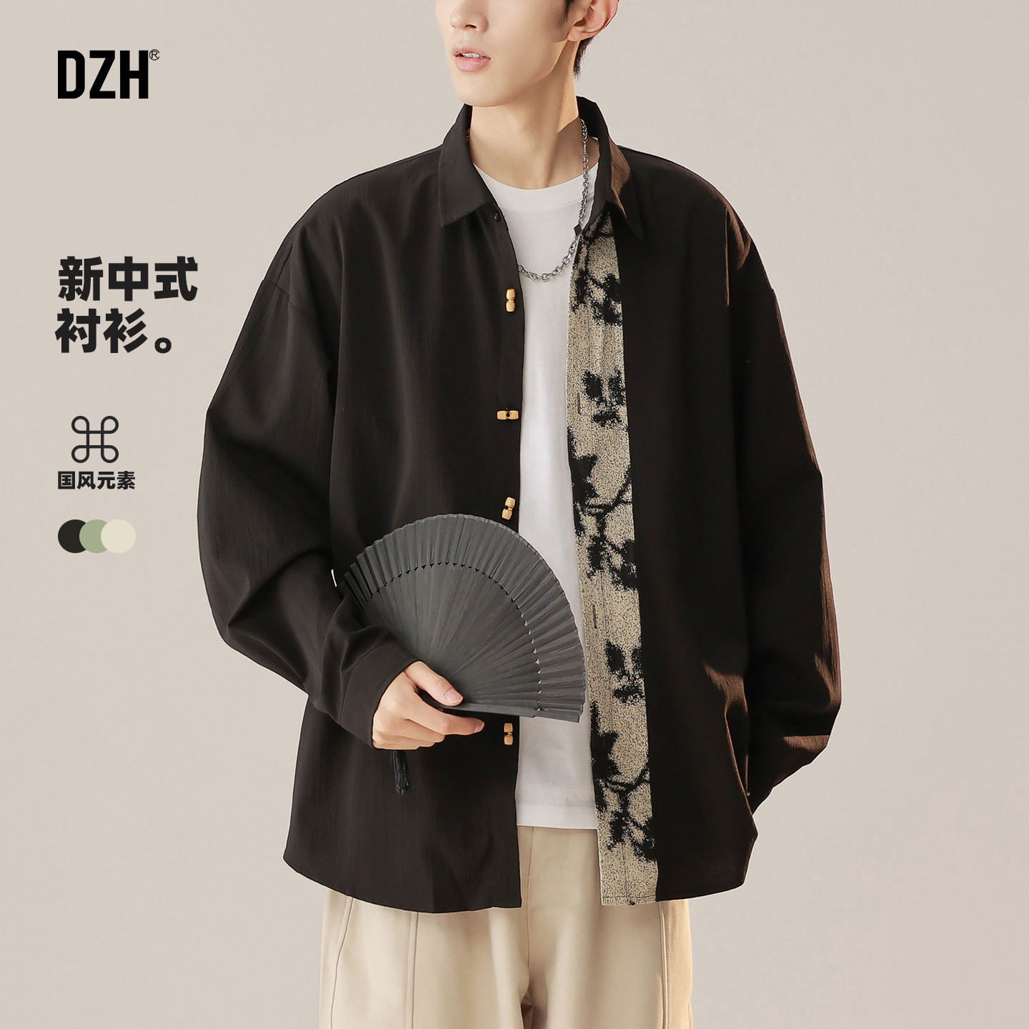 原创国潮新中式国风男装盘扣衬衫休闲大码复古中山装外套2025春夏