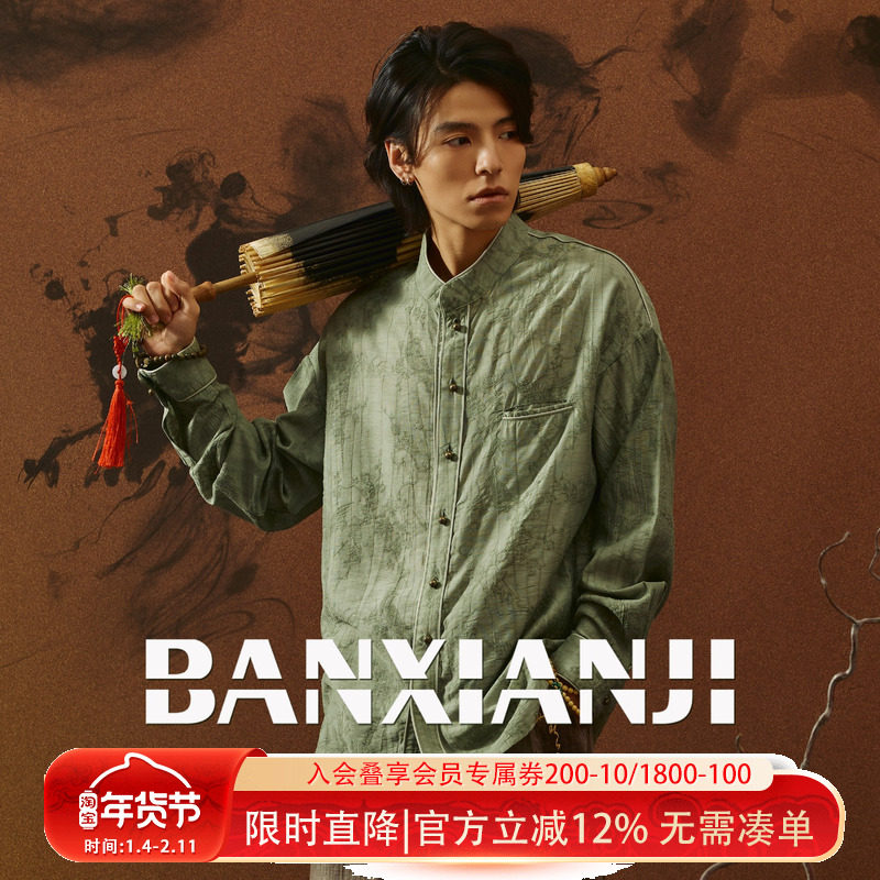 半闲集<喜上眉梢>立领提花衬衫新中式国风男装秋款刺绣长袖衬衣