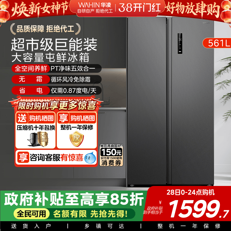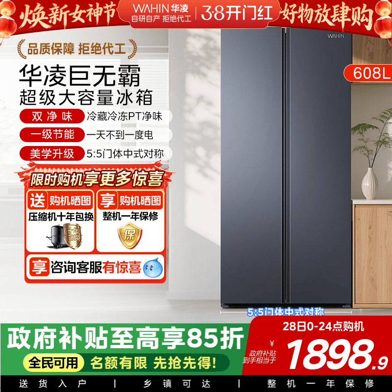 政府换新补贴海尔616L大容量对开双开门家用一级超薄风冷无霜冰箱