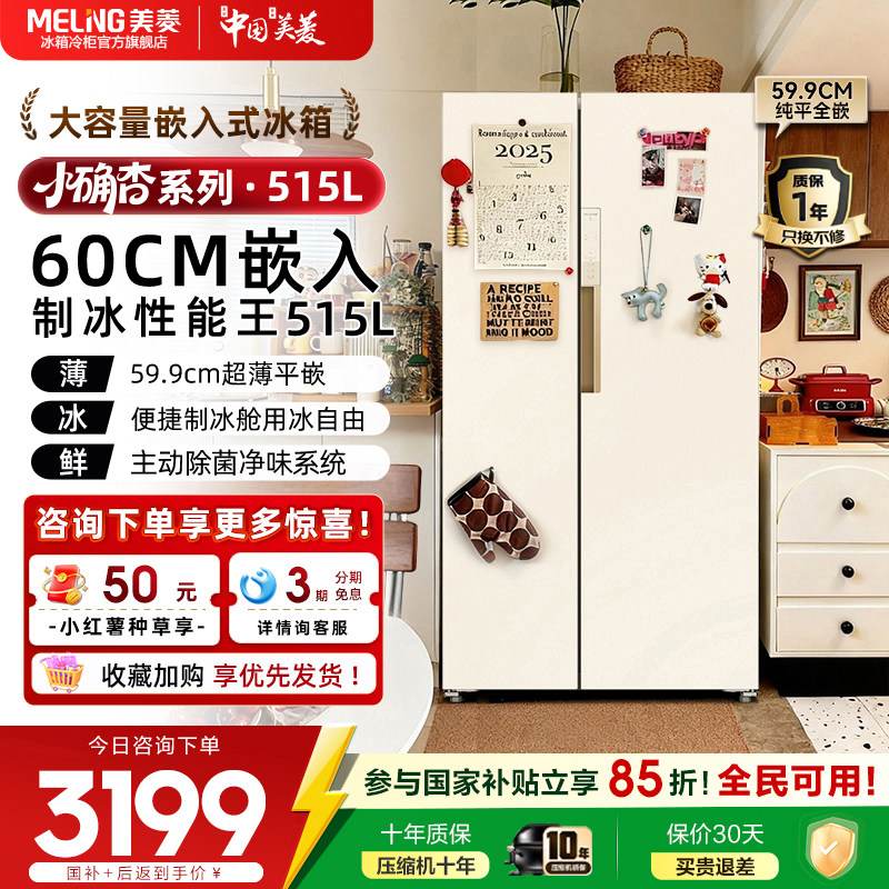 美菱小确杏515L双开对开门冰箱风冷无霜家用大容量节能官方正品