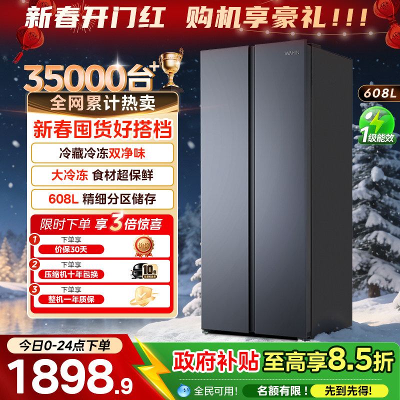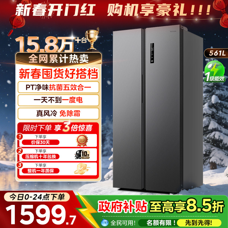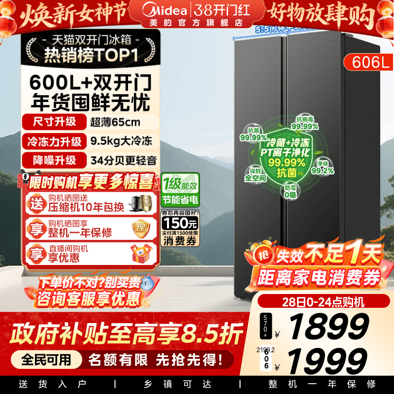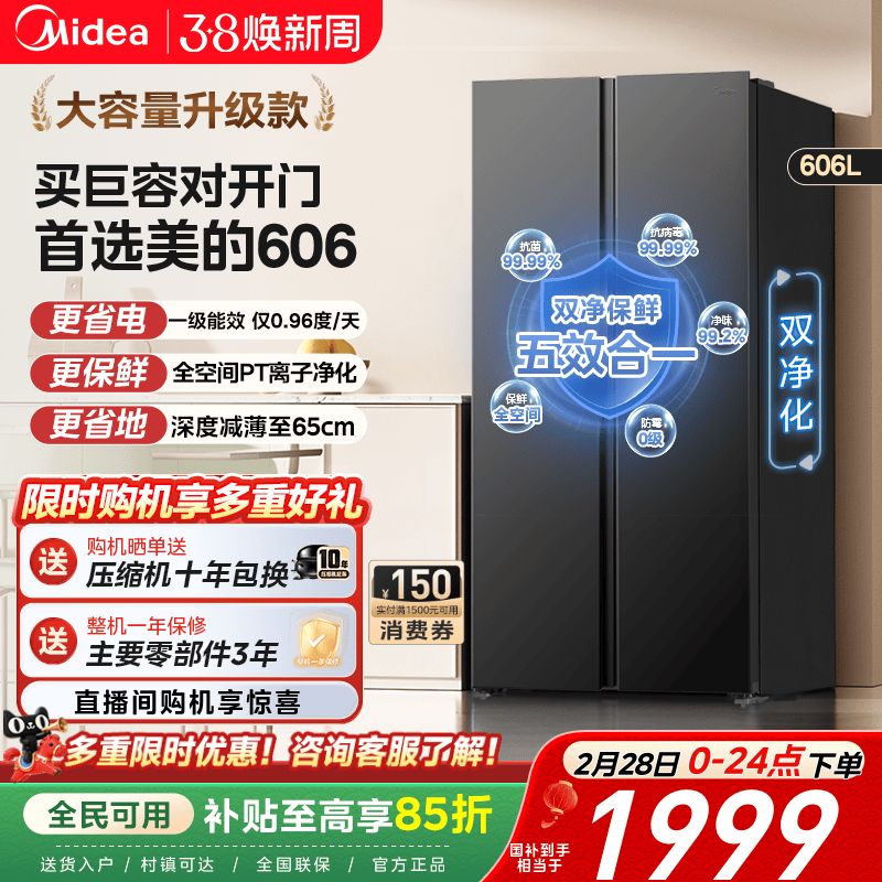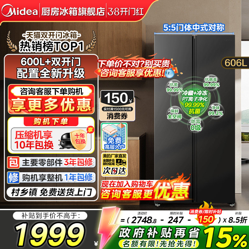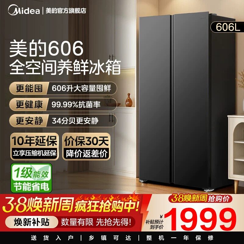 【政府补贴】美的606对开双开门大容量一级节能风冷无霜家用冰箱