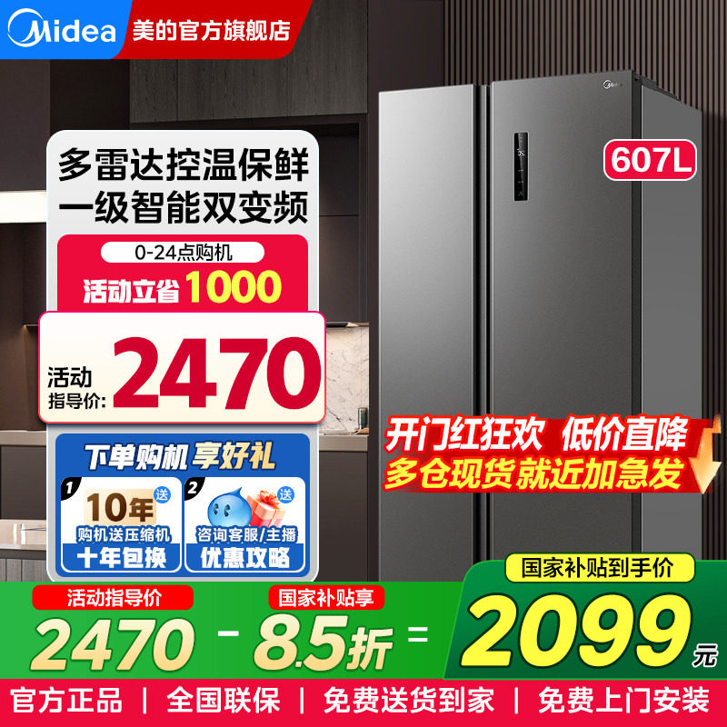 美的607L对开双开门大容量风冷无霜一级能效家用电冰箱官方旗舰店