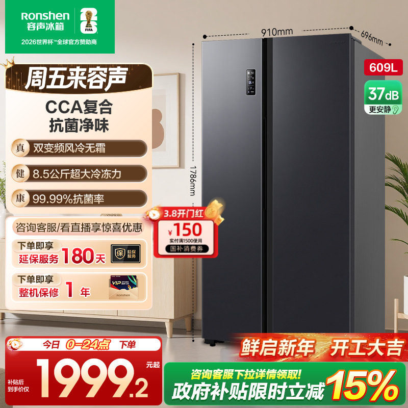 容声609L双开对开门对开风冷家用一级无霜嵌入大容量冰箱换新补贴