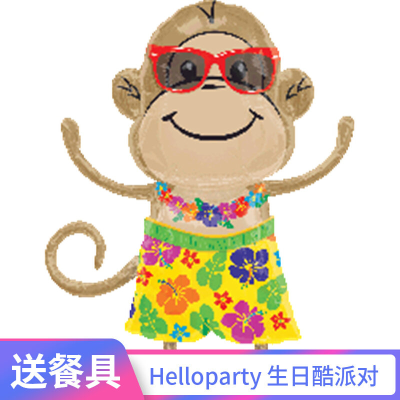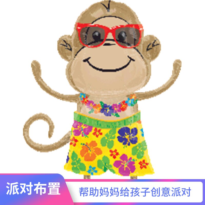 大号夏威夷花公猴MonkeyLuauBoyShape卡通飘空气球派对空间装饰