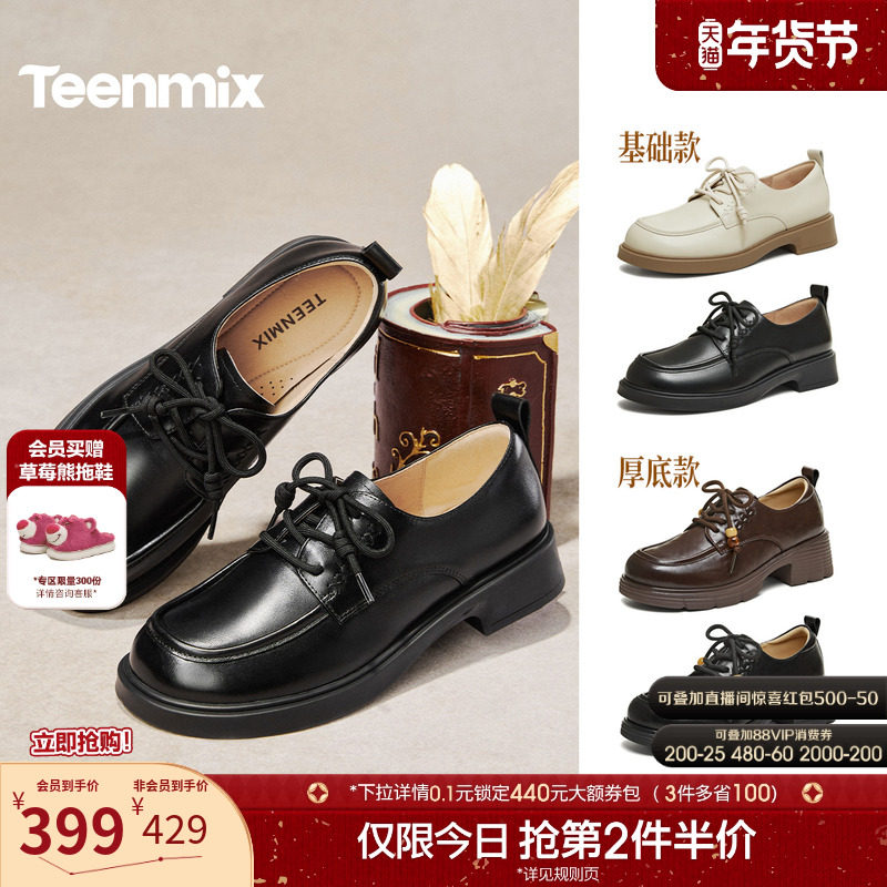 天美意复古系带软底英伦乐福小皮鞋女平底单鞋2026春新款COY49AM6