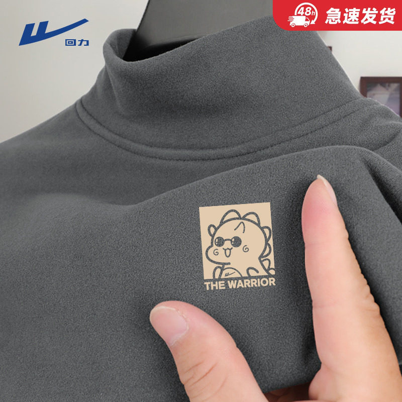 回力双面德绒打底衫男冬季加绒超厚青少年半高领保暖内搭长袖T恤Y