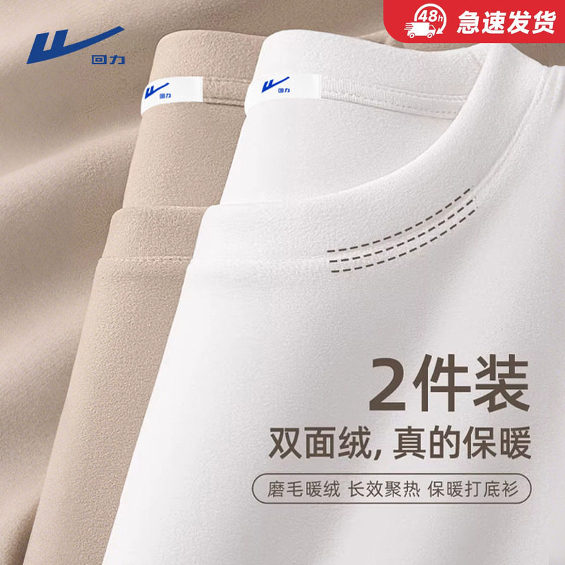 回力德绒打底衫男冬季双面磨毛内搭保暖内衣春季加绒白色长袖t恤Y