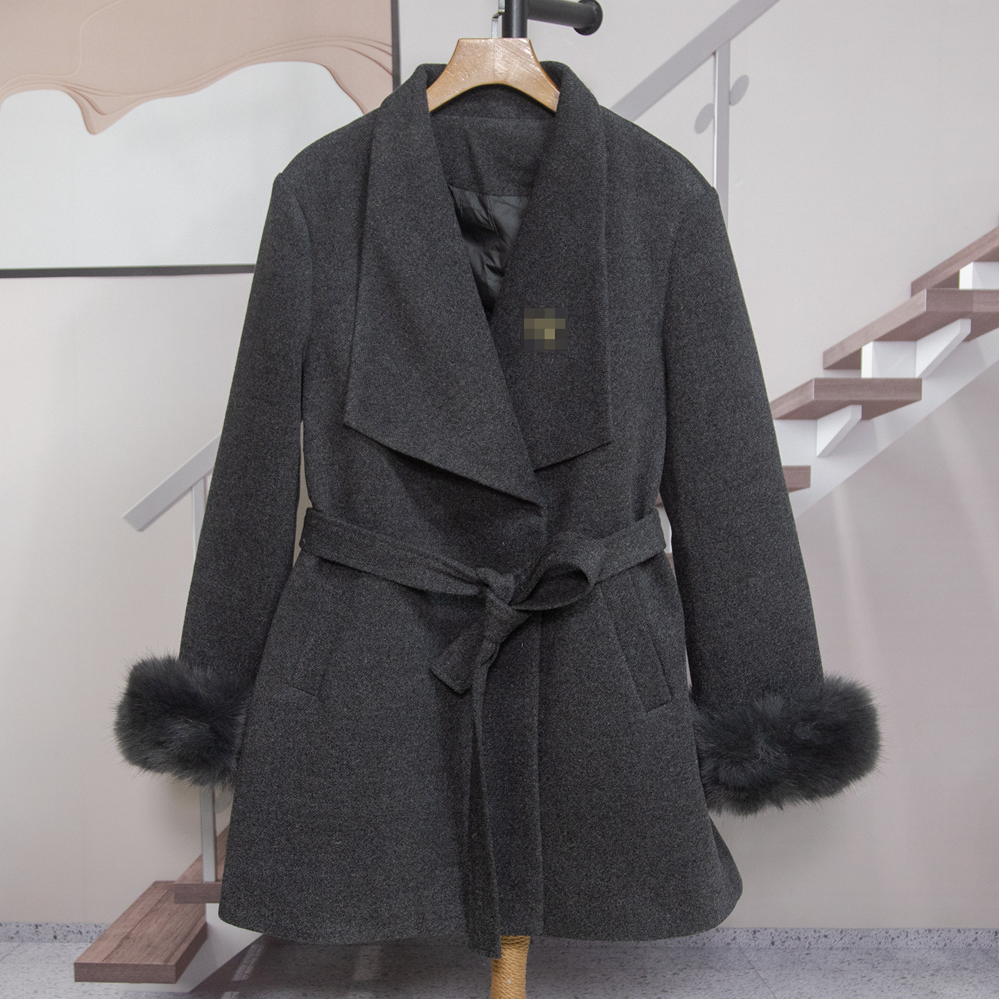 - 毛呢大衣女狐狸毛领