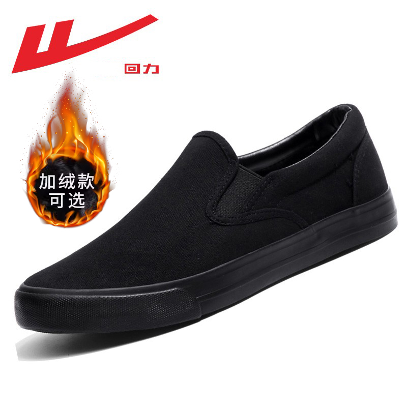回力帆布男鞋秋季休闲板鞋一脚蹬运动工作软底轻便小白鞋加绒棉鞋