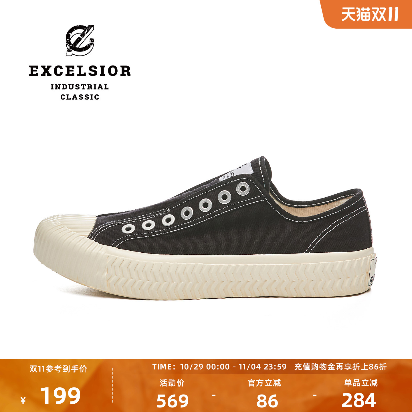 excelsior饼干鞋官方 增高厚底懒人鞋女黑色低帮一脚蹬帆布鞋男
