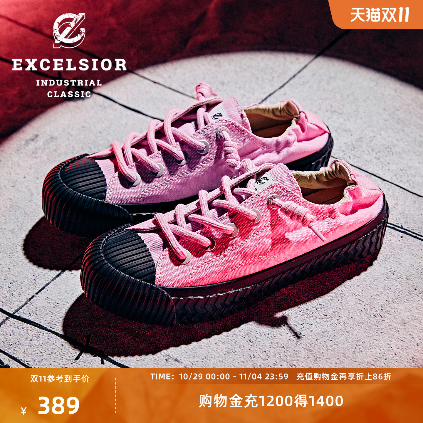 【双马尾系列】excelsior饼干鞋官方 粉色厚底板鞋一脚蹬帆布鞋女