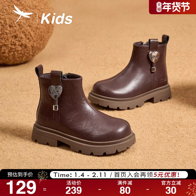 红蜻蜓女童鞋2025秋冬新款时尚靴子加绒儿童短靴洋气保暖公主皮靴