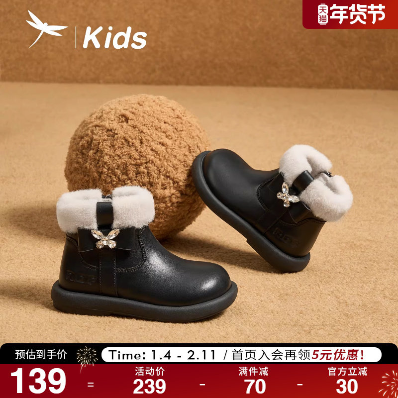 红蜻蜓女童鞋2025秋冬新款儿童加绒短靴毛毛公主靴子雪地靴皮靴