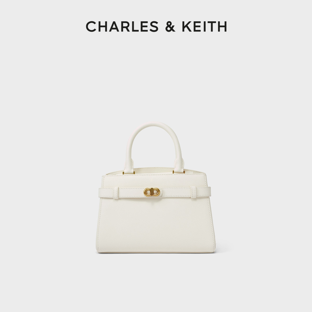 CHARLES&KEITH春季女包CK2-50160102中号金属扣带饰手提凯莉包女