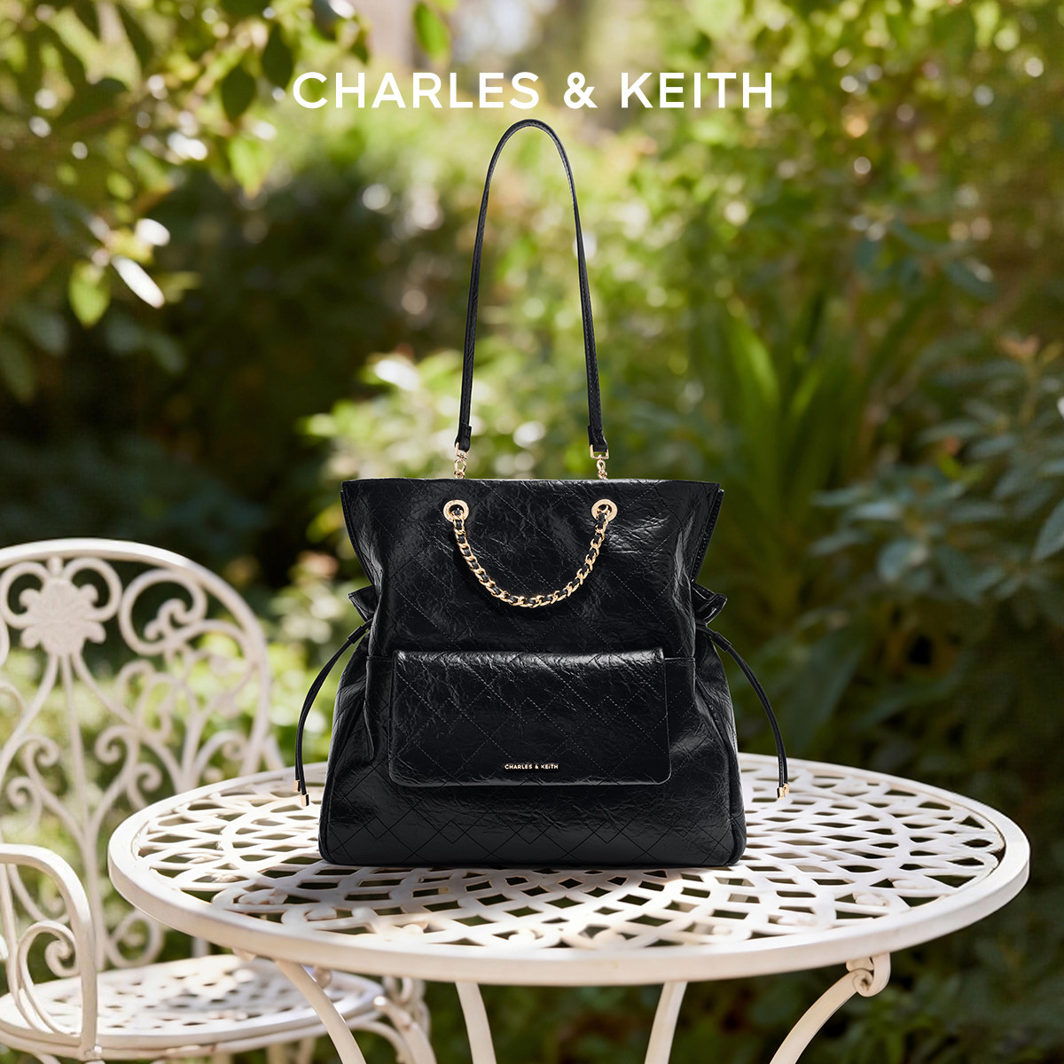 CHARLES&KEITH25新款CK2-20782654大容量抽绳链条托特福袋包大号