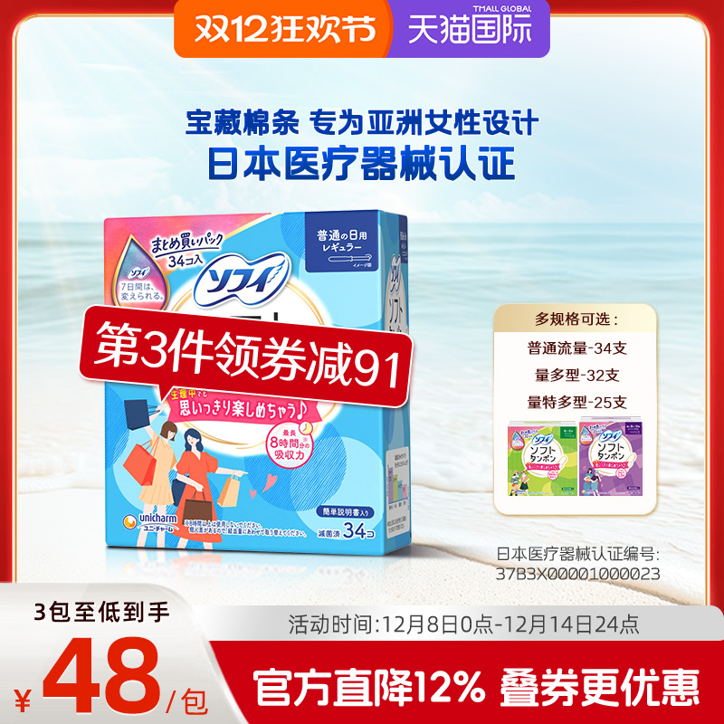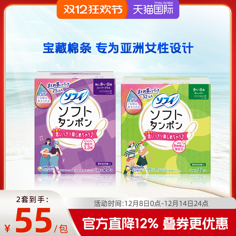苏菲尤妮佳卫生棉条导管式棉条卫生巾月经杯内置日用量多日本进口