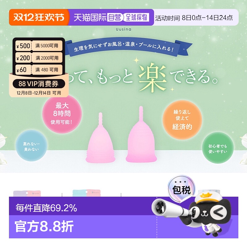 日本直邮 Uusina 月经杯 郁金香系列 卫生巾替换 日本药监局认证