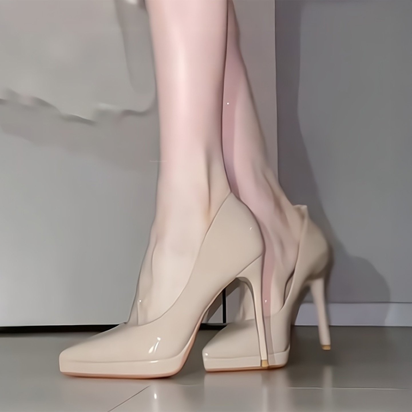 裸色高跟鞋女细跟2025年春夏新款漆皮防水台性感气质单鞋正装尖头