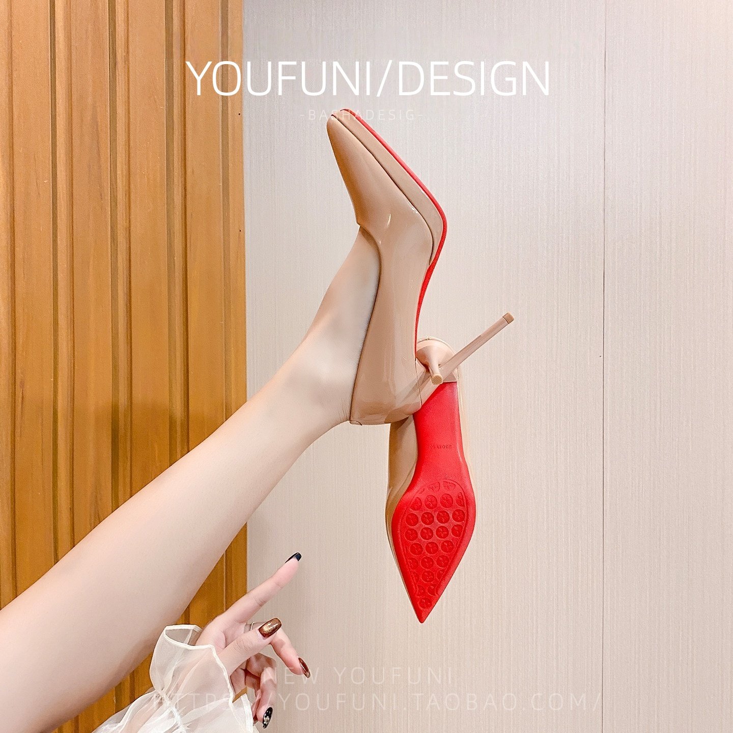 红底裸色高跟鞋女细跟2025春季新款绝美性感漆皮尖头防水台单鞋女