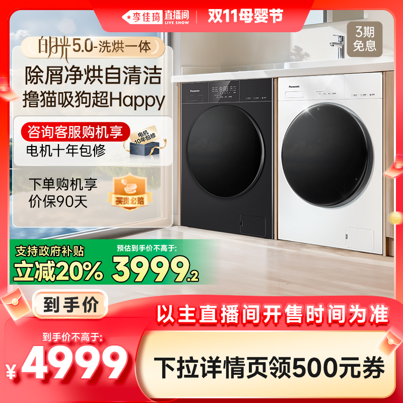 【李佳琦直播间母婴节】松下白月光5.0全自动洗烘一体滚筒洗衣机