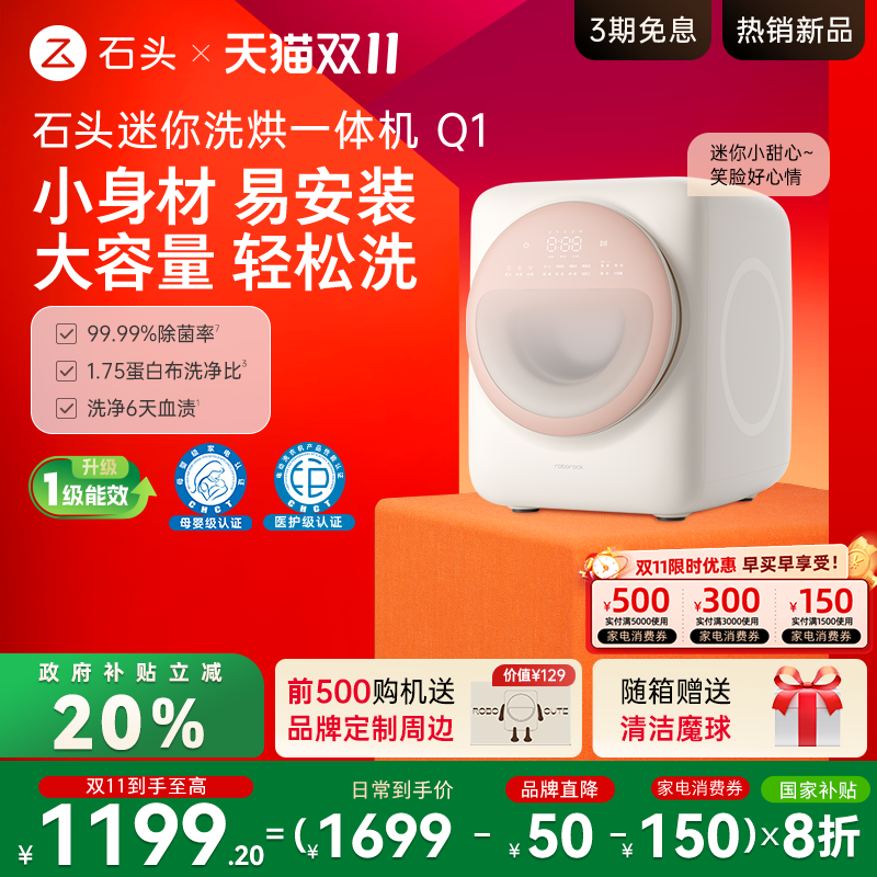 石头洗烘一体机Q1系列 内衣洗衣机全自动滚筒 抑菌母婴级智能托管