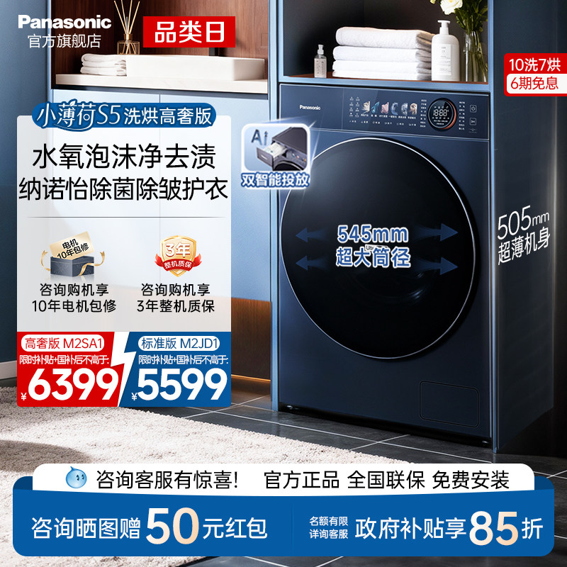 松下小薄荷S5超薄洗衣机10KG家用洗烘一体滚筒纳诺怡除菌-M2SA1
